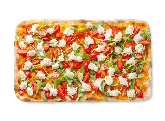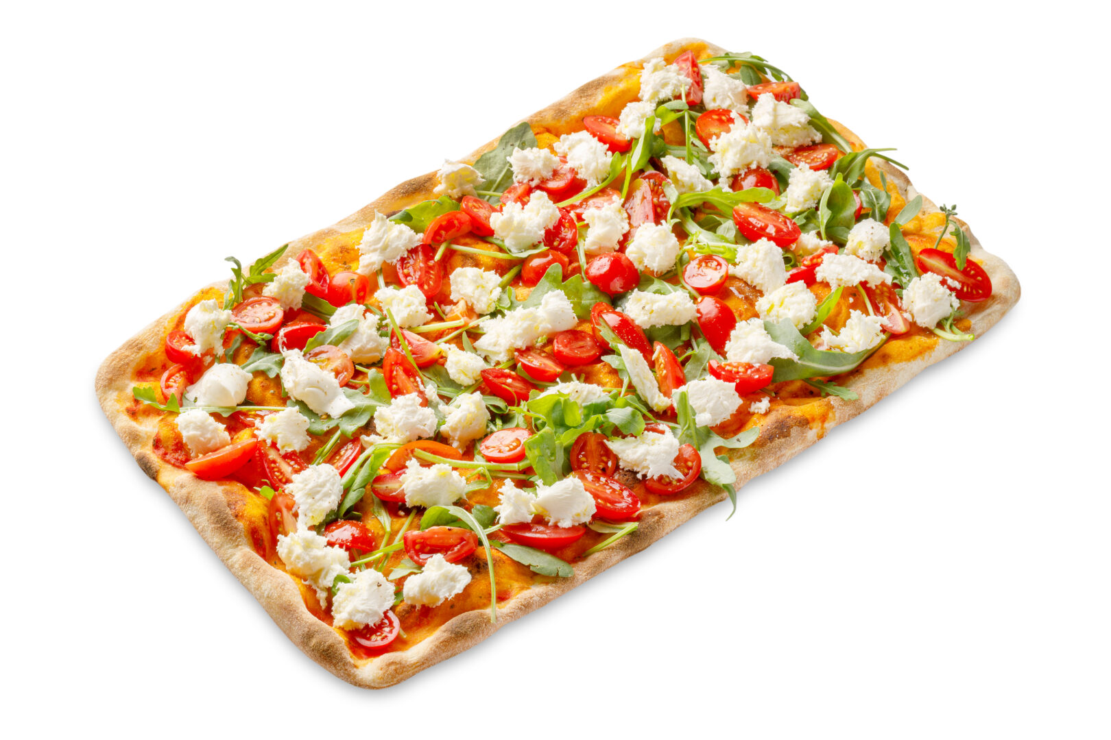 sos de roșii, roșii cherry, mozzarella, rucola