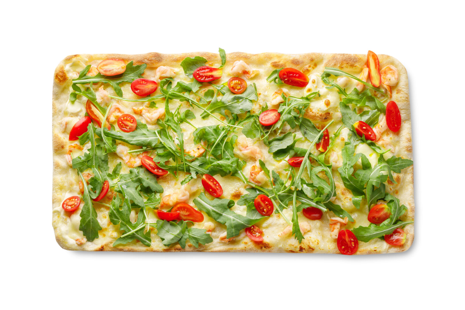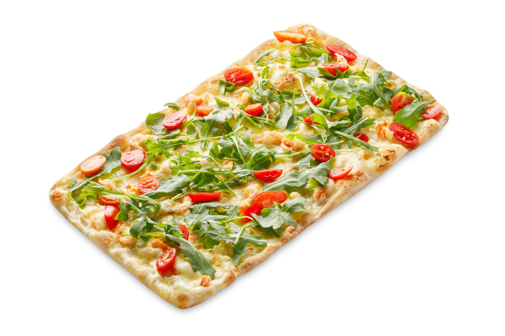 creveți, mascarpone, mozzarella,rucola, roșii cherry