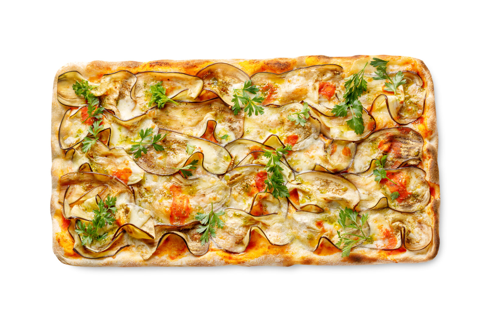 sos de roșii, vinete, patrunjel, usturoi, mozzarella