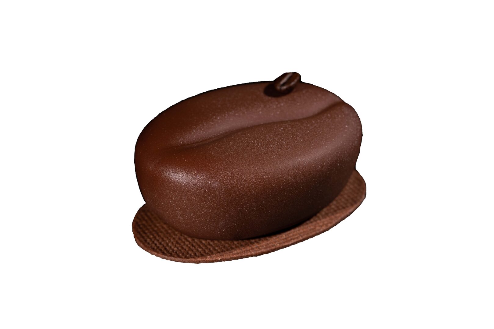 mousse de mascarpone ti vanilie naturala. Glazurat cu ciocolata neagra belgiana. Suport din sable de ciocolata.